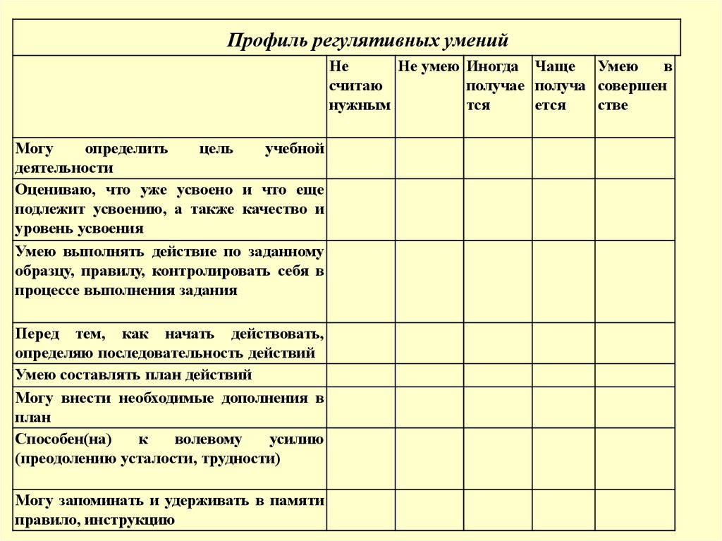 Профиль регулятивных уменийНе