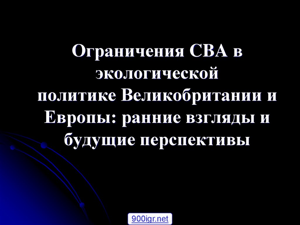 1. Ограничения CBA в экологической политике Великобритании и Европы: ранние взгляды и будущие перспективы