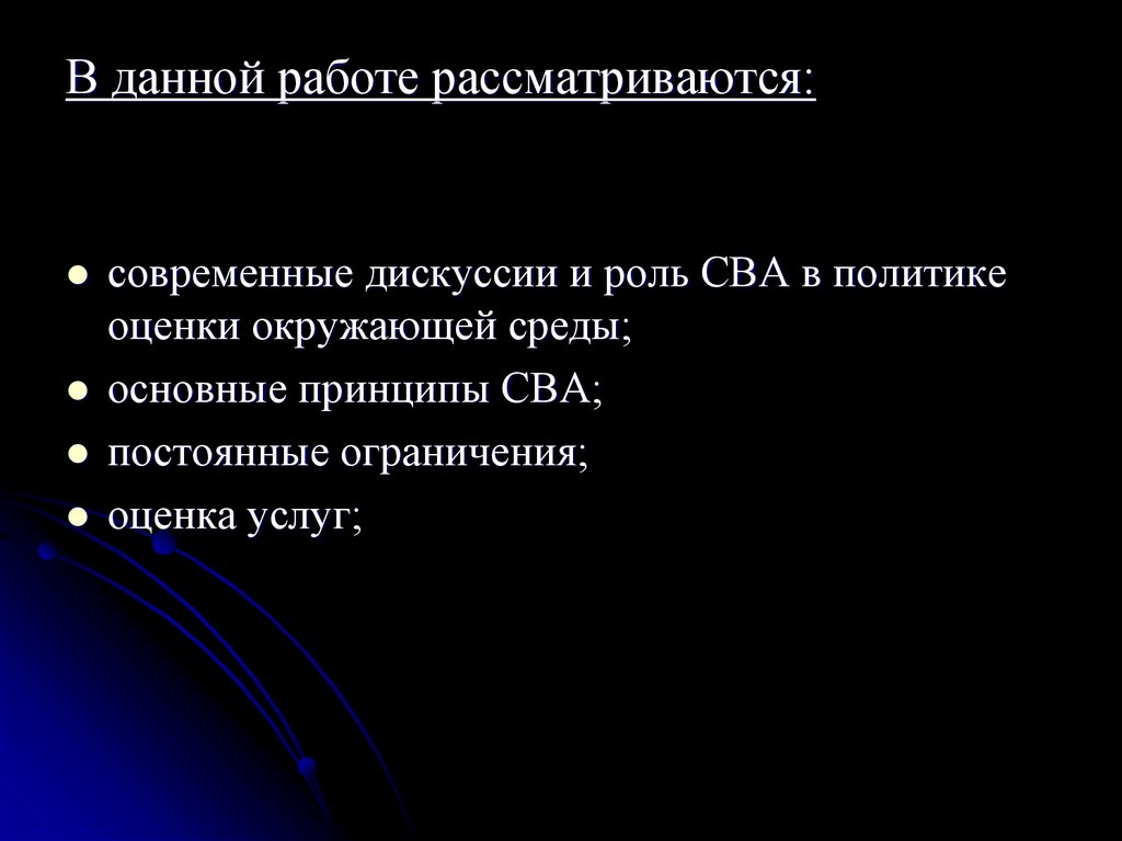 В данной работе рассматриваются:современные дискуссии и роль СВА в политике