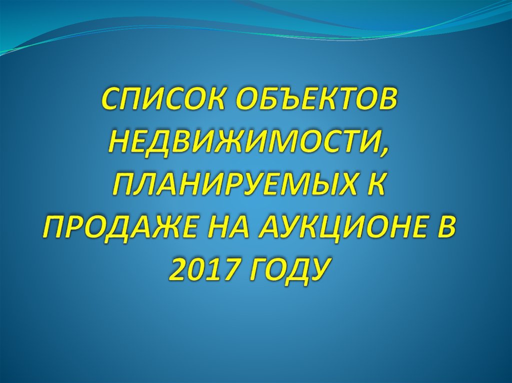 Список объектов недвижимости, планируемых к продаже на аукционе в 2017 году