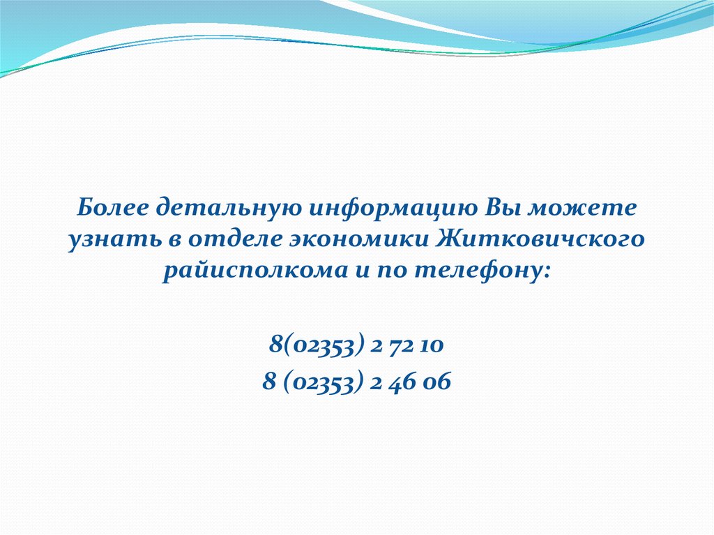 Более детальную информацию Вы можетеузнать в отделе экономики Житковичского