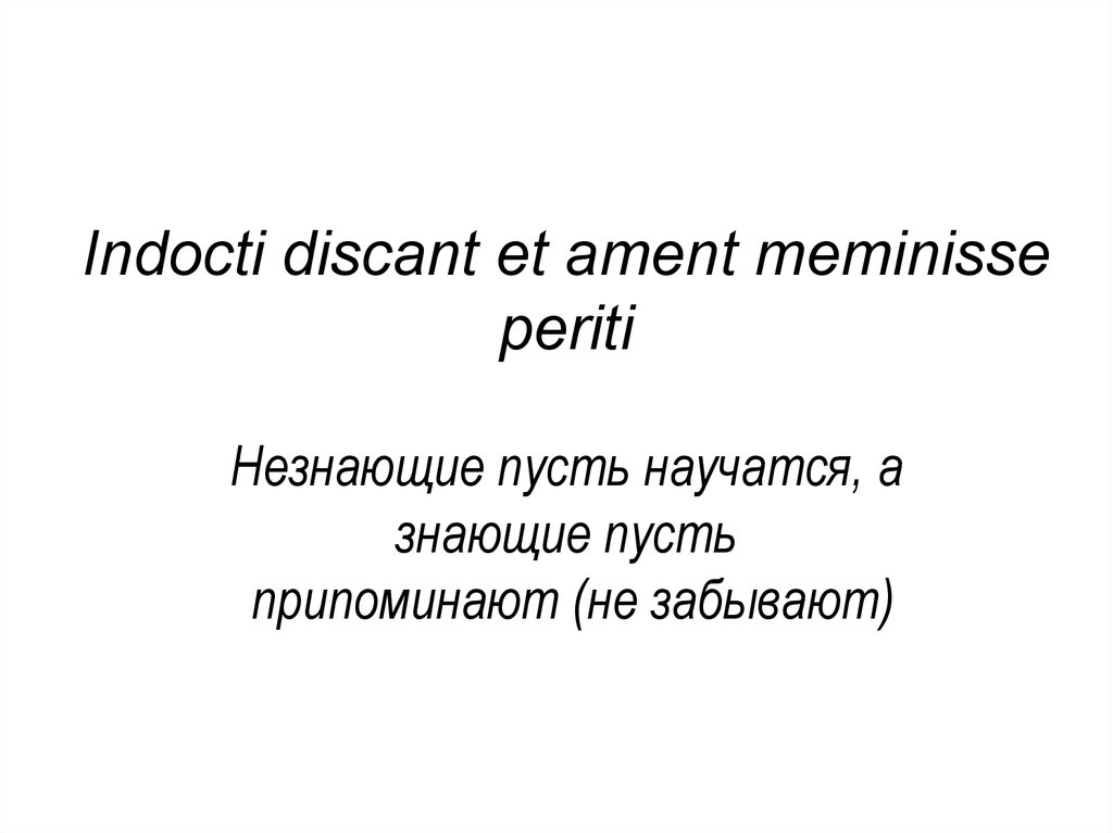 Indocti discant et ament meminisseperiti