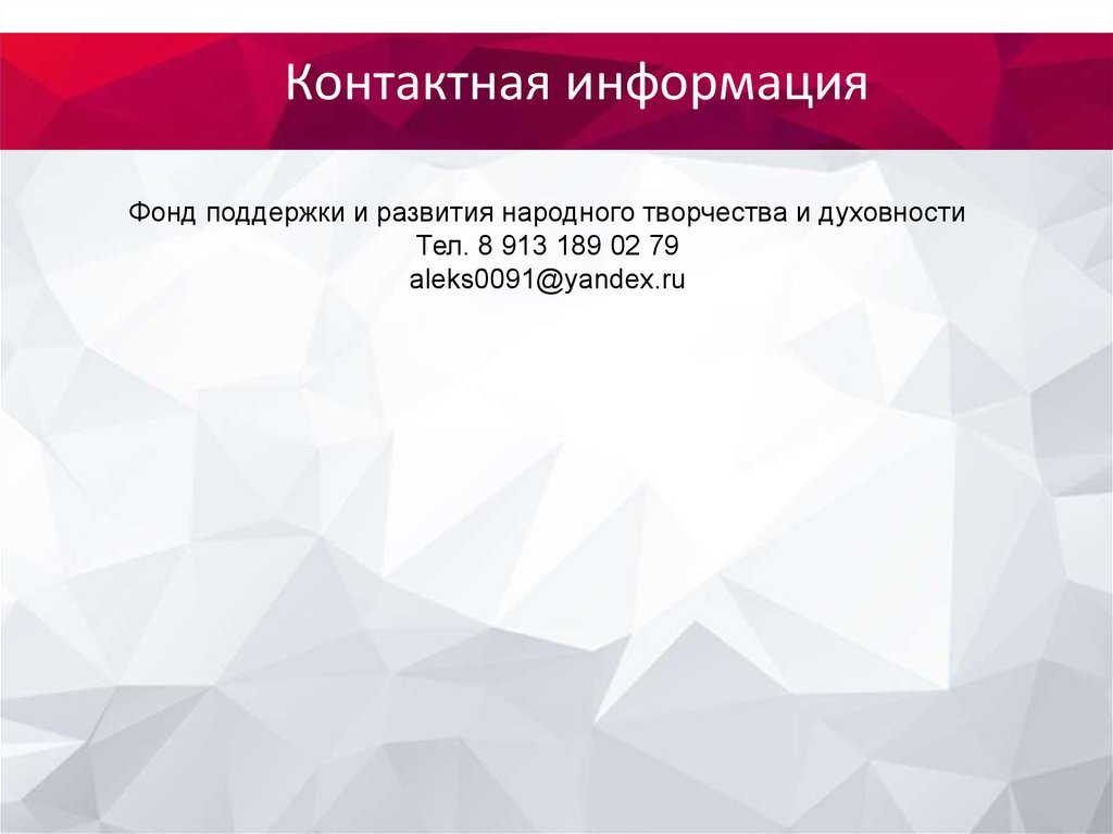 Контактная информацияФонд поддержки и развития народного творчества и духовности