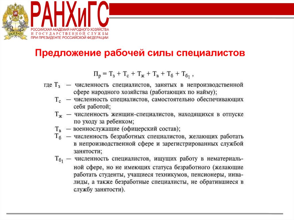 Предложение рабочей силы специалистов5.