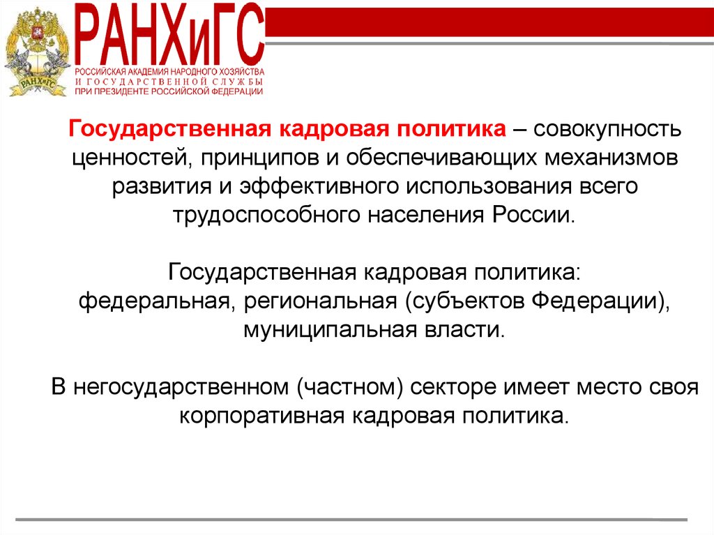 Государственная кадровая политика: