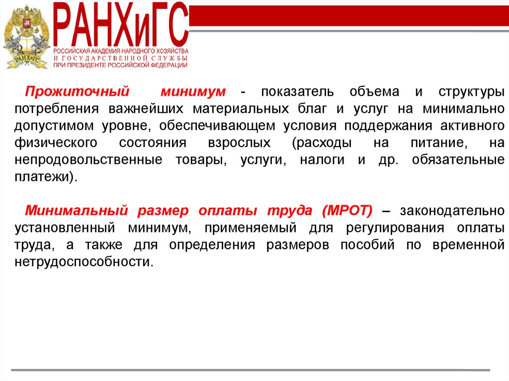 Прожиточныйминимум - показатель объема и структуры