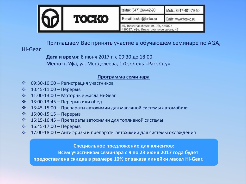 Приглашаем Вас принять участие в обучающем семинаре по AGA,Hi-Gear.
