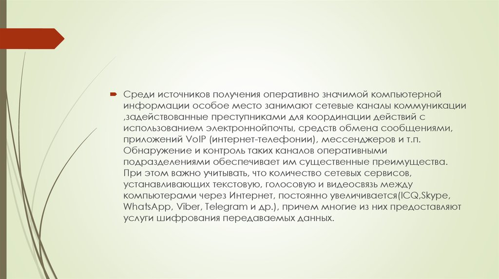 Среди источников получения оперативно значимой компьютернойинформации особое место занимают сетевые каналы коммуникации