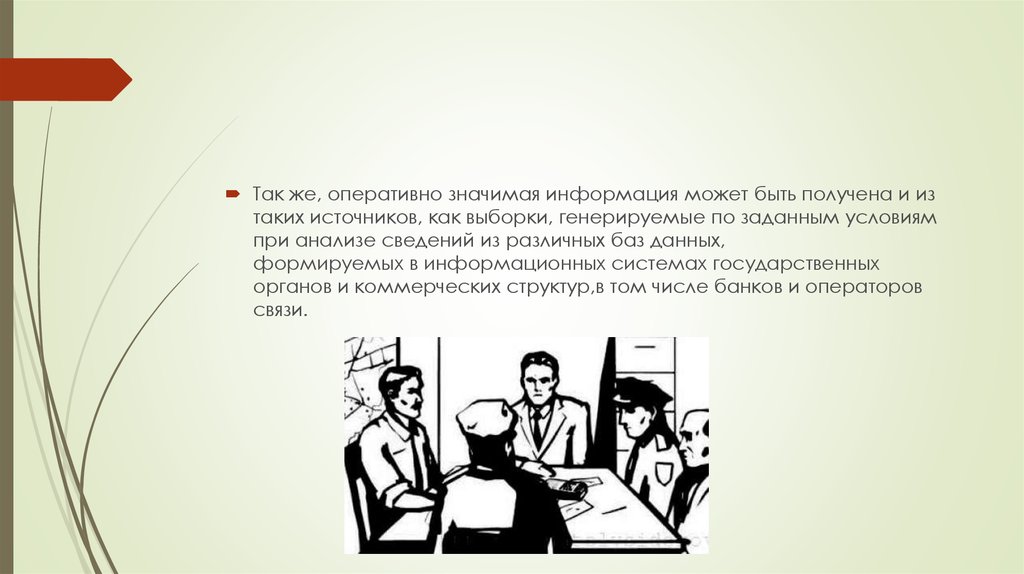 Так же, оперативно значимая информация может быть получена и изтаких источников, как выборки, генерируемые по заданным условиям