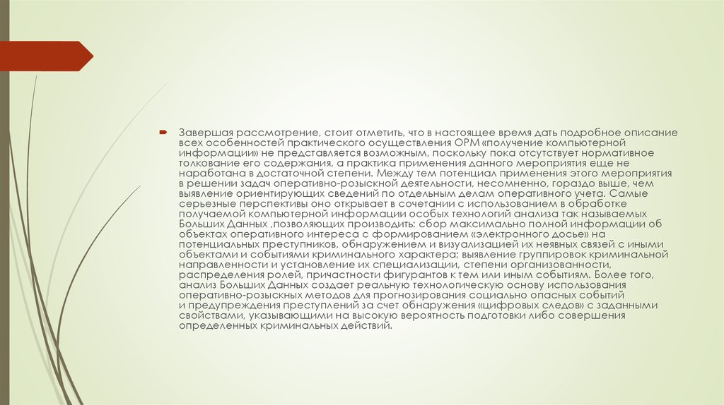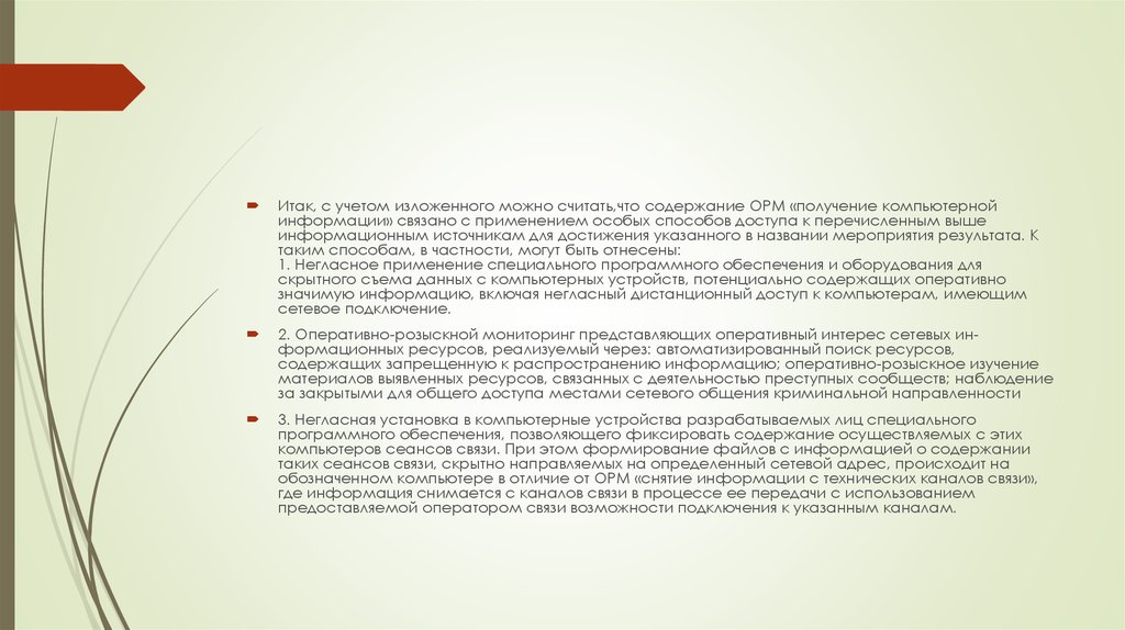 Завершая рассмотрение, стоит отметить, что в настоящее время дать подробное описаниевсех особенностей практического осуществления ОРМ «получение компьютерной