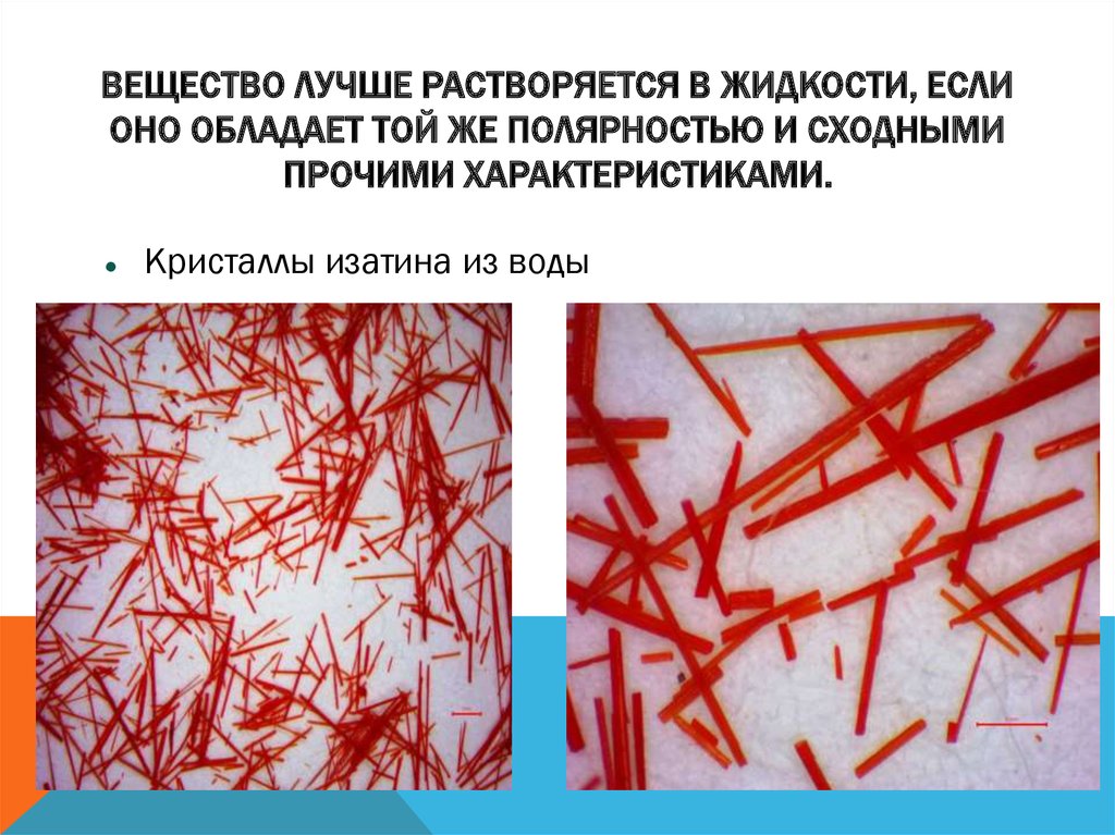 ВЕЩЕСТВО ЛУЧШЕ РАСТВОРЯЕТСЯ В ЖИДКОСТИ, ЕСЛИОНО ОБЛАДАЕТ ТОЙ ЖЕ ПОЛЯРНОСТЬЮ И СХОДНЫМИ