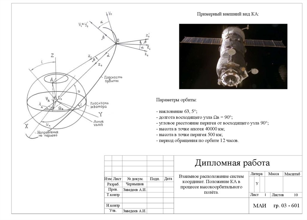 Примерный внешний вид КА:Параметры орбиты: