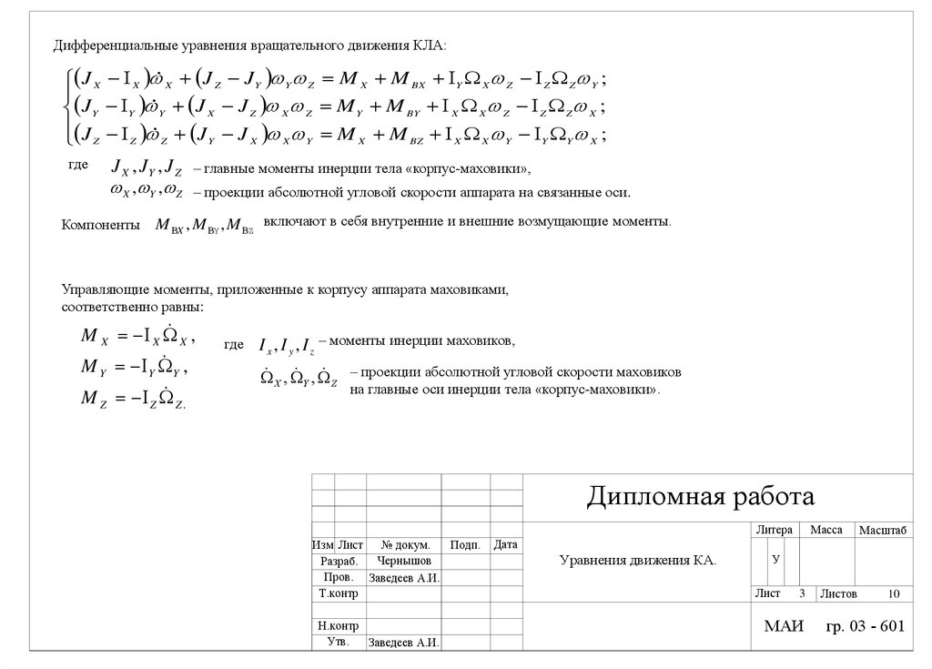 Дифференциальные уравнения вращательного движения КЛА:J X X X J Z J Y Y Z M X M BX Y X Z Z Z Y ;