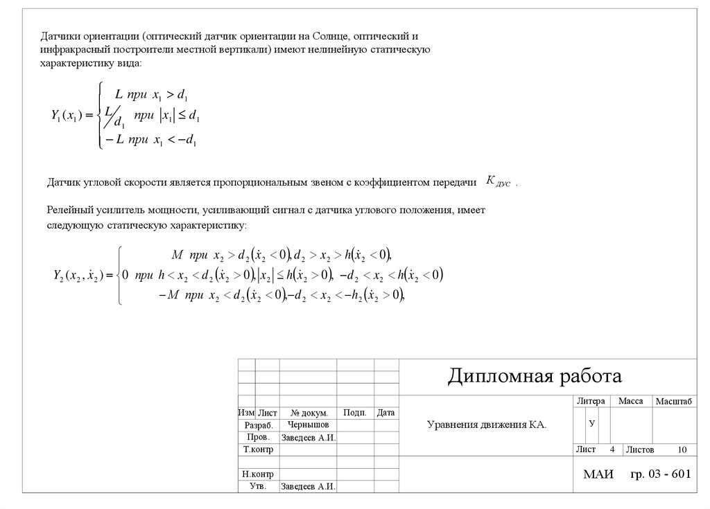 Датчики ориентации (оптический датчик ориентации на Солнце, оптический иинфракрасный построители местной вертикали) имеют нелинейную статическую