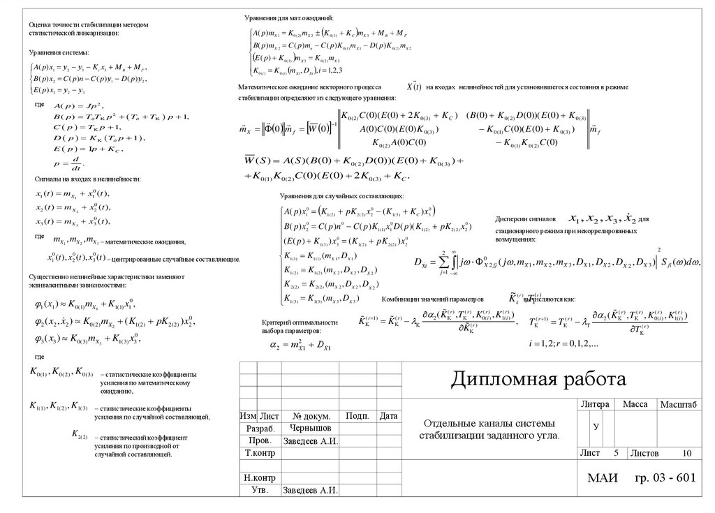 Уравнения для мат.ожиданий:Оценка точности стабилизации методом