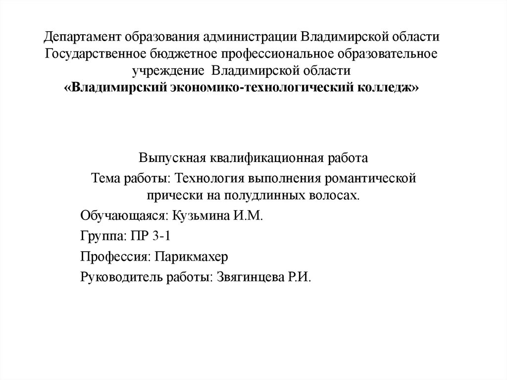 1. Департамент образования администрации Владимирской области Государственное бюджетное профессиональное образовательное учреждение Вла