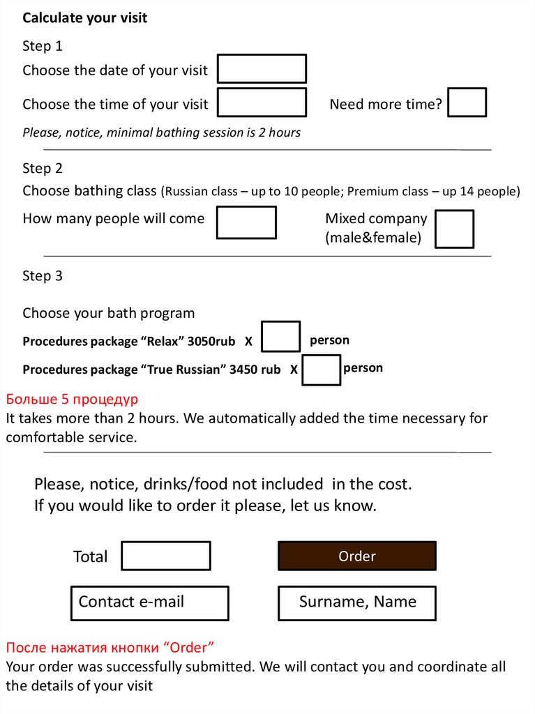 Choose bathing class (Russian class – up to 10 people; Premium class – up 14 people)