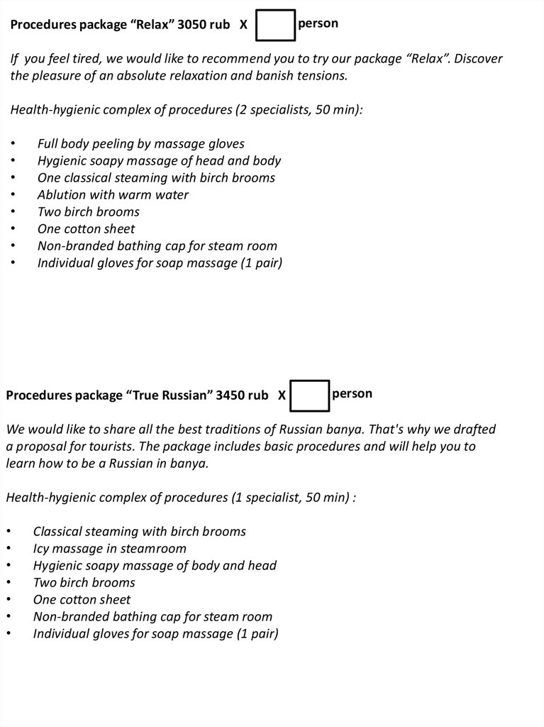 Procedures package “True Russian” 3450 rub X