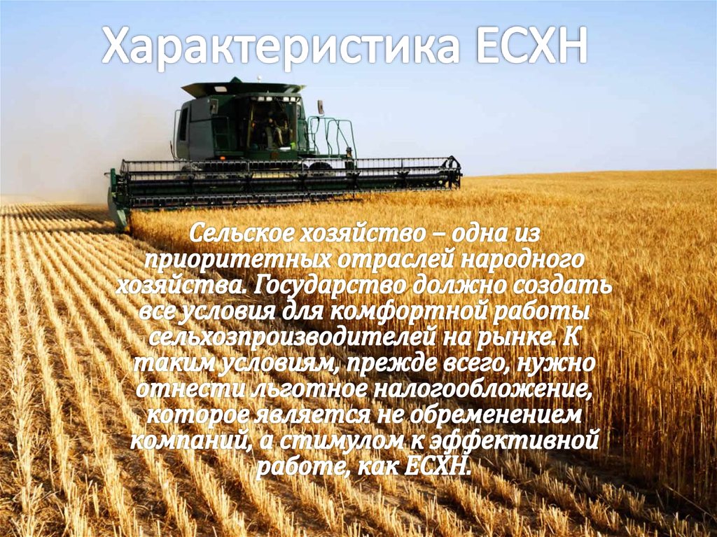 Характеристика ЕСХННалогоплательщики и налоговая база