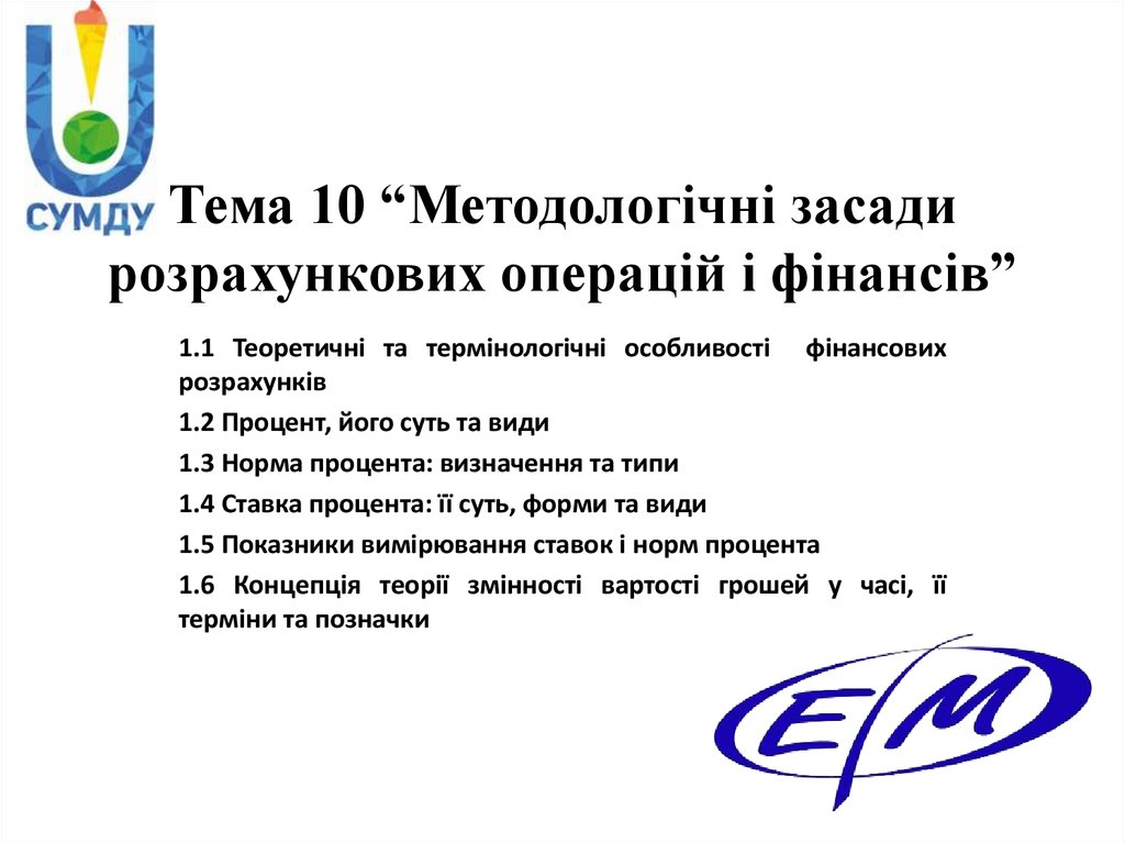 1. Тема 10 “Методологічні засади розрахункових операцій і фінансів”