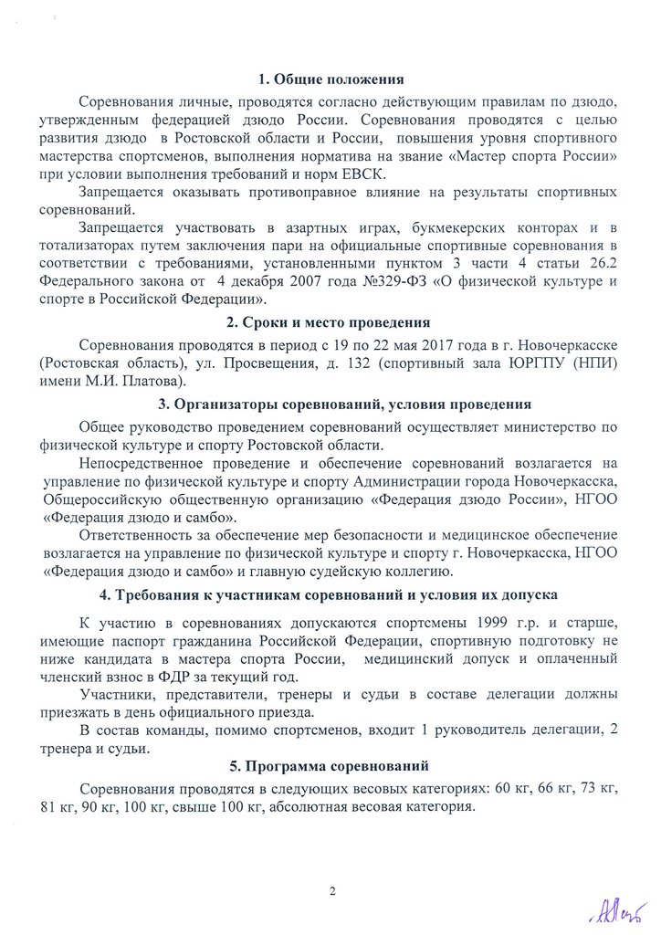Регламент проведения ХVIII всероссийских соревнований по дзюдо