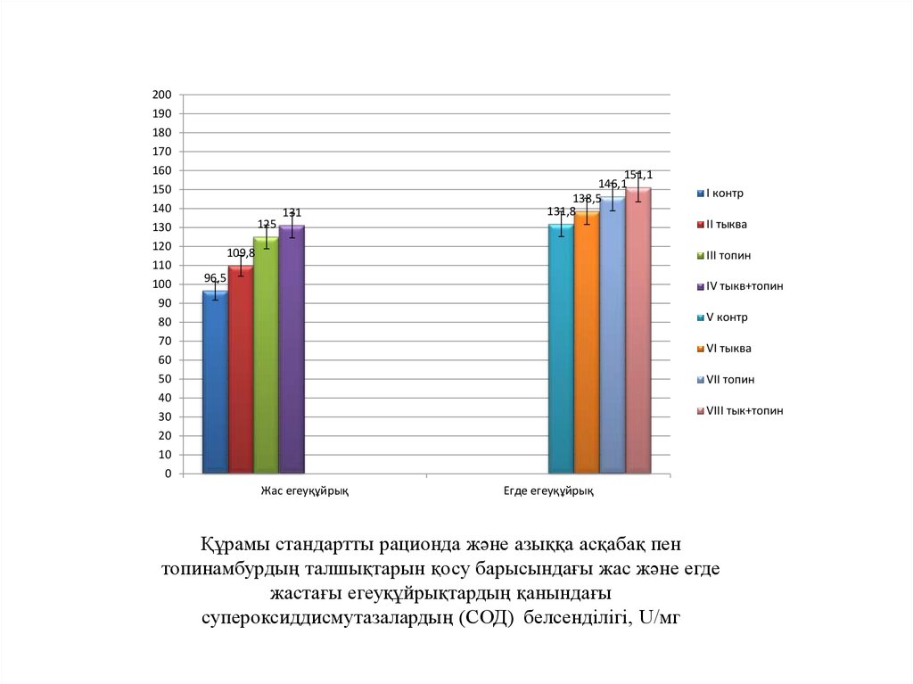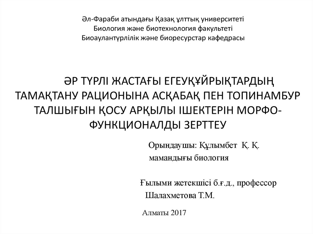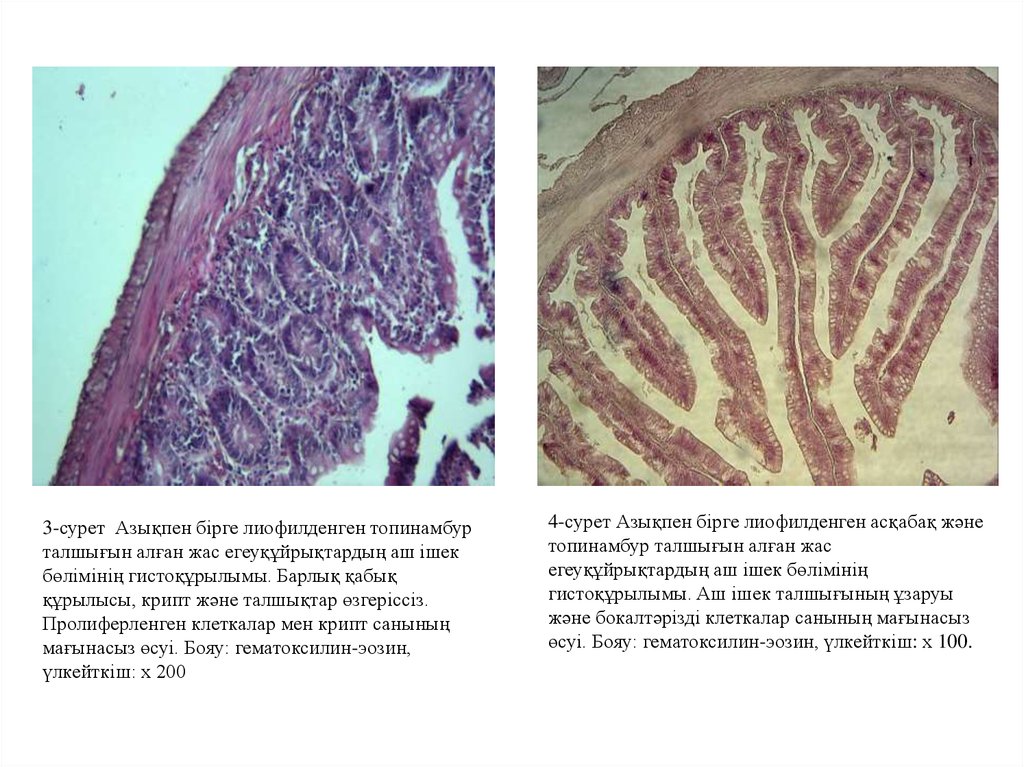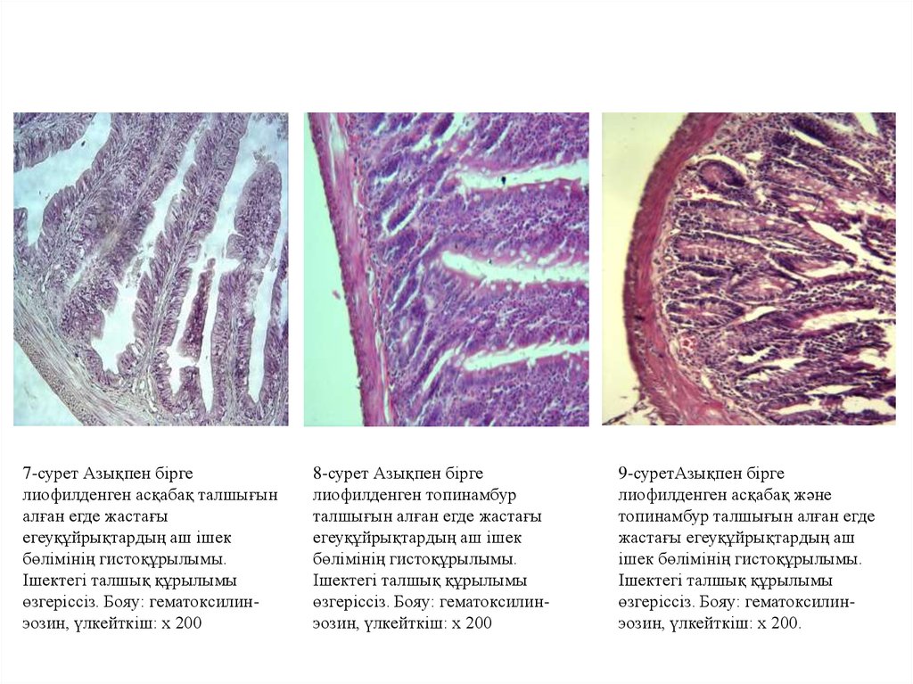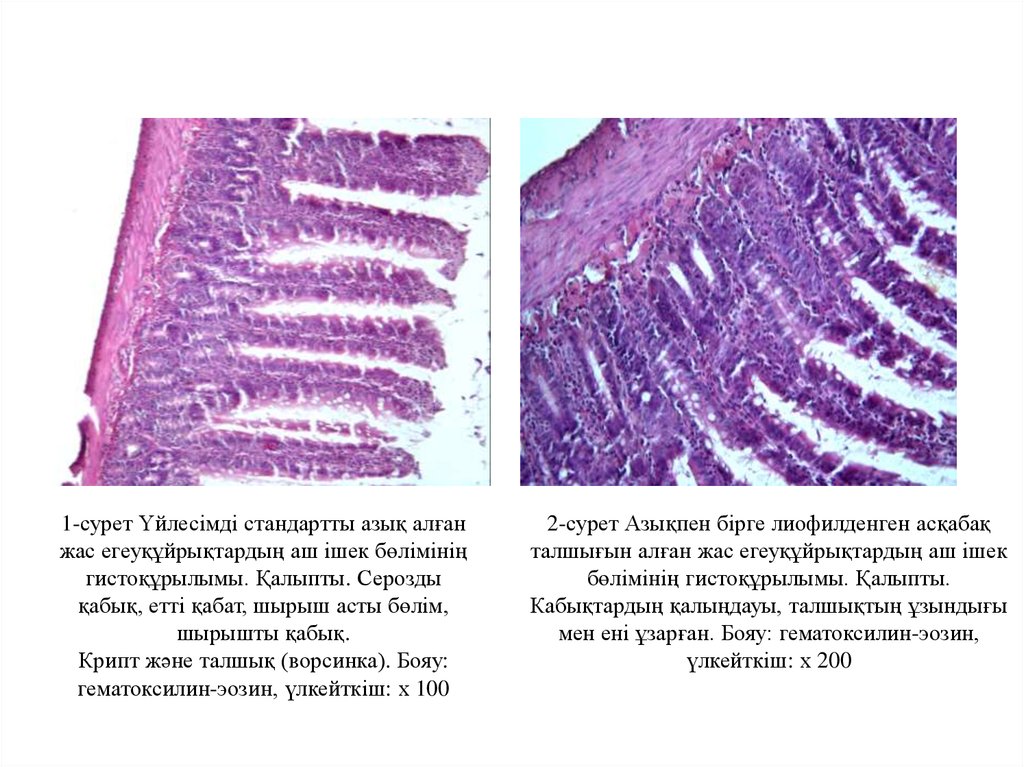 1. ӘР ТҮРЛІ ЖАСТАҒЫ ЕГЕУҚҰЙРЫҚТАРДЫҢ ТАМАҚТАНУ РАЦИОНЫНА АСҚАБАҚ ПЕН ТОПИНАМБУР ТАЛШЫҒЫН ҚОСУ АРҚЫЛЫ ІШЕКТЕРІН МОРФО-ФУНКЦИОНАЛДЫ ЗЕРТТЕУ