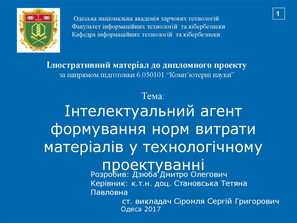 Одеська національна академія харчових технологійФакультет інформаційних технологій та кібербезпеки