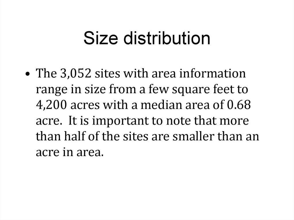 • The 3,052 sites with area informationrange in size from a few square feet to