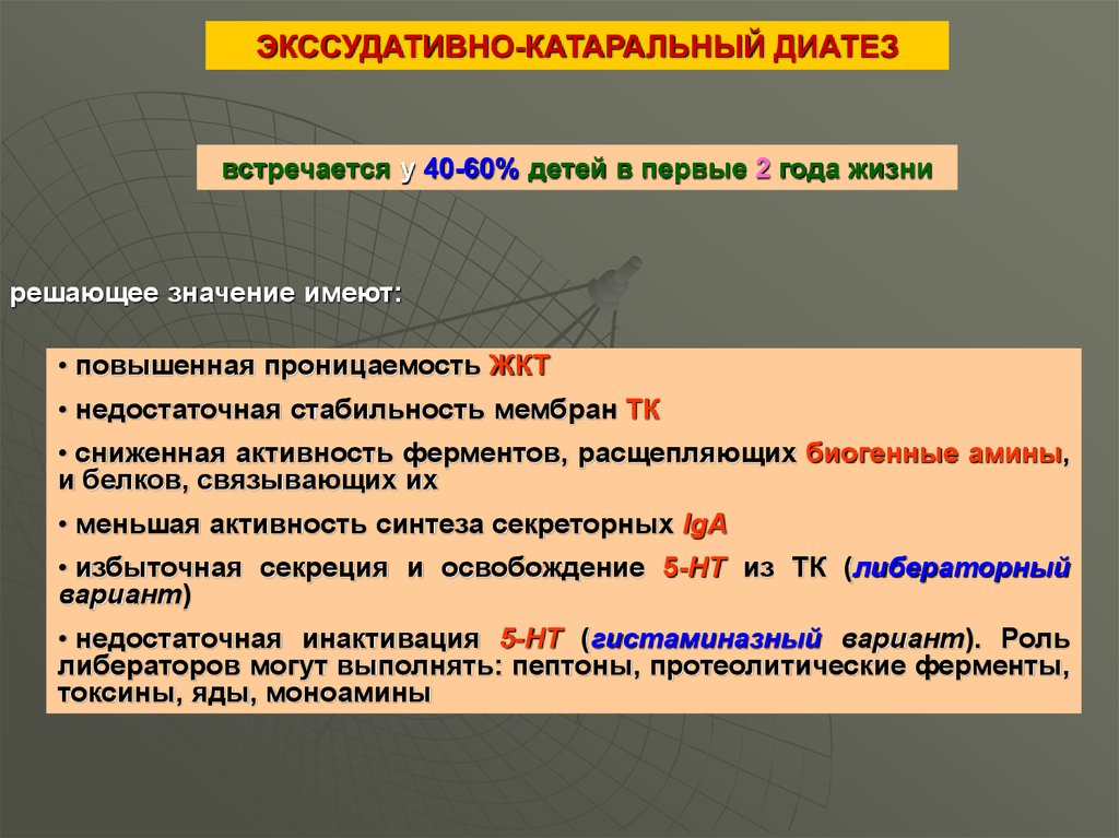ЭКССУДАТИВНО-КАТАРАЛЬНЫЙ ДИАТЕЗвстречается у 40-60% детей в первые 2 года жизни