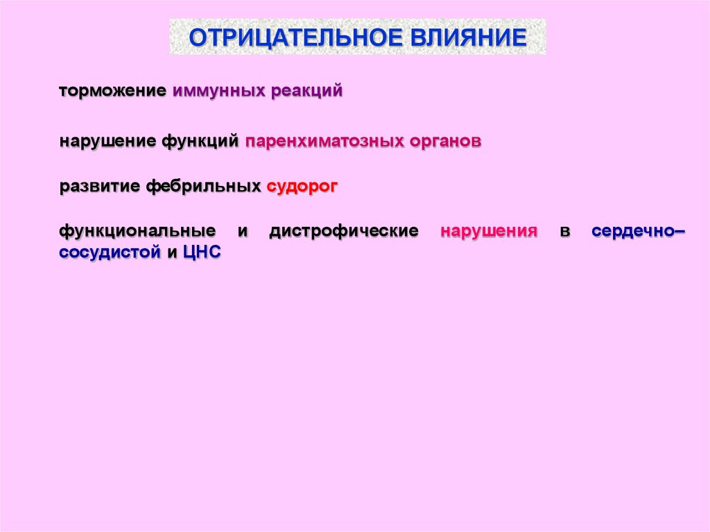 ОТРИЦАТЕЛЬНОЕ ВЛИЯНИЕторможение иммунных реакций