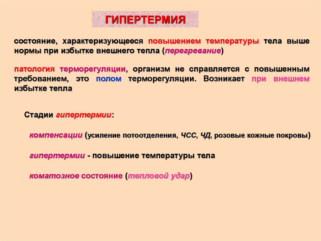 ГИПЕРТЕРМИЯсостояние, характеризующееся повышением температуры тела выше