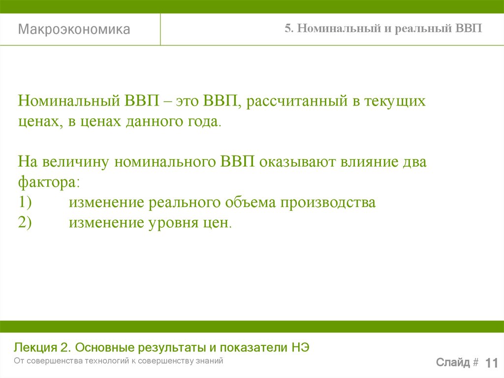 Номинальный ВВП – это ВВП, рассчитанный в текущих