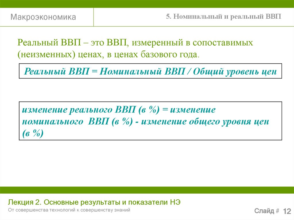 Реальный ВВП – это ВВП, измеренный в сопоставимых