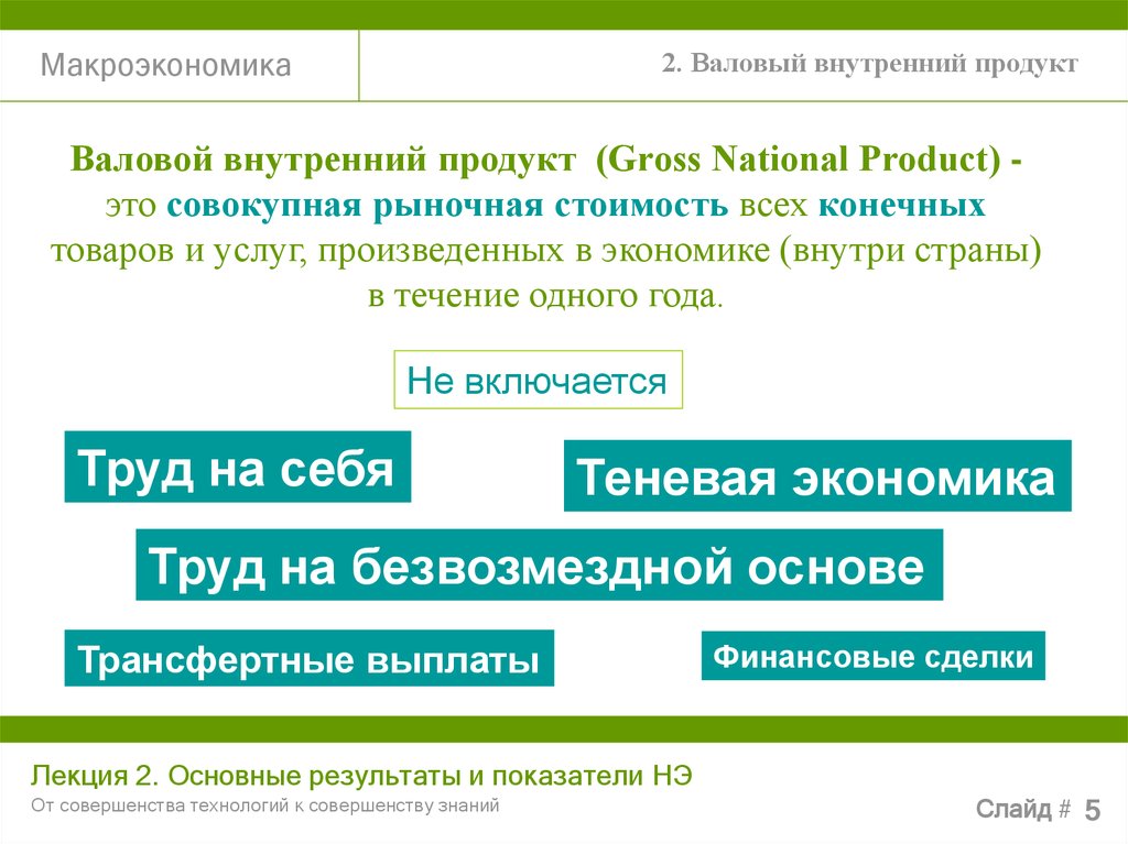 Валовой внутренний продукт (Gross National Product) это совокупная рыночная стоимость всех конечных