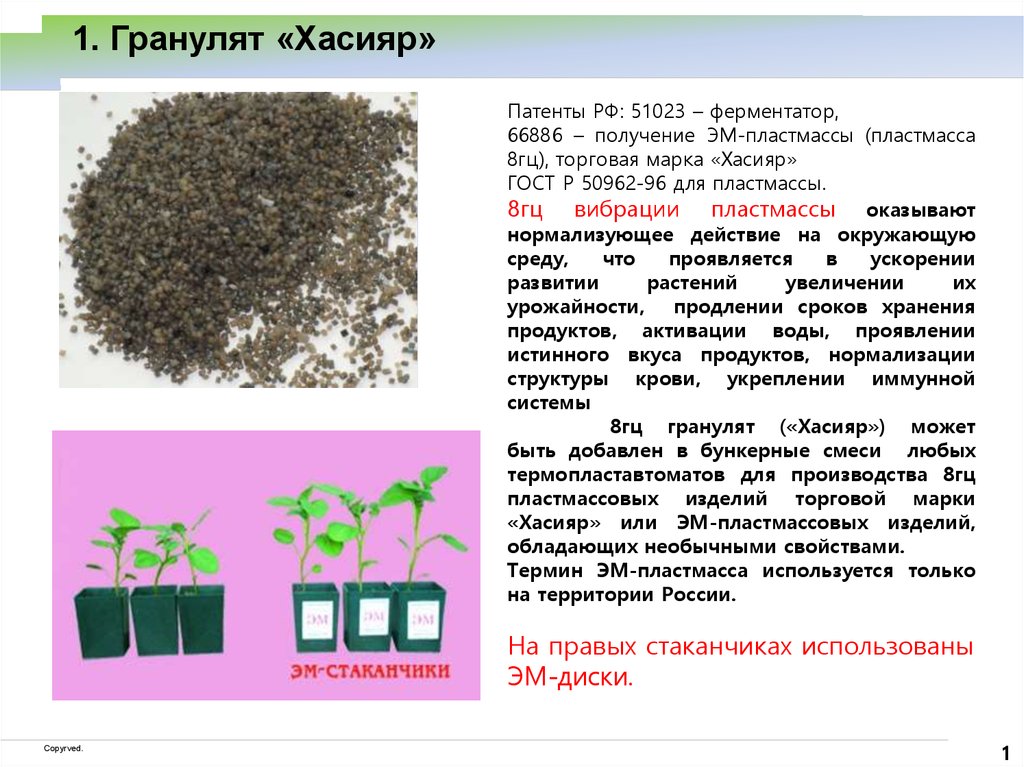 ет все необычные свойства пластмассы. Получен патент РФ на ЭМ-пластмассу, а а ЭМ-грану