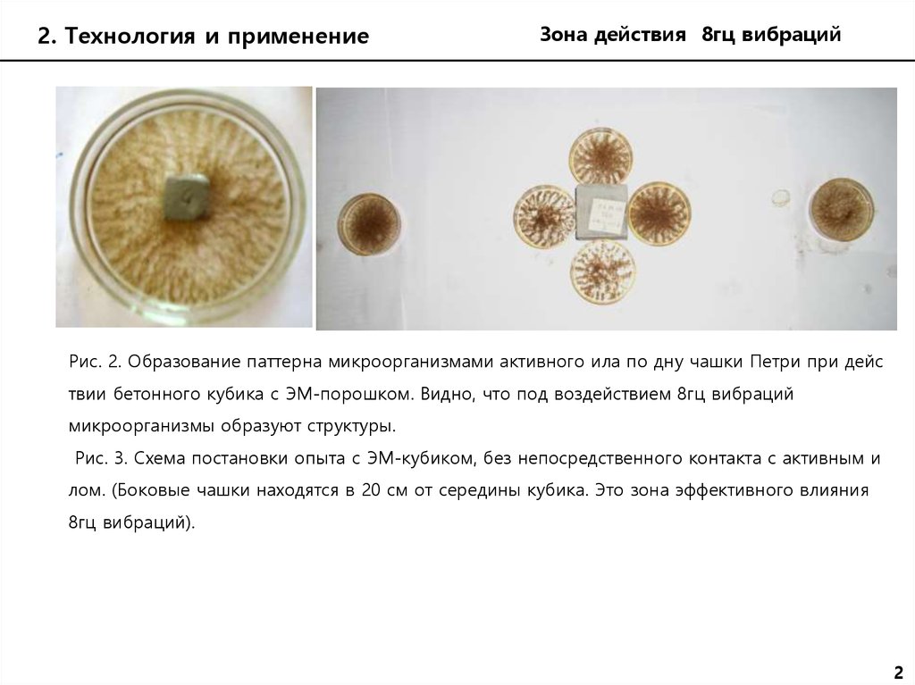 твии бетонного кубика с ЭМ-порошком. Видно, что под воздействием 8гц вибраций