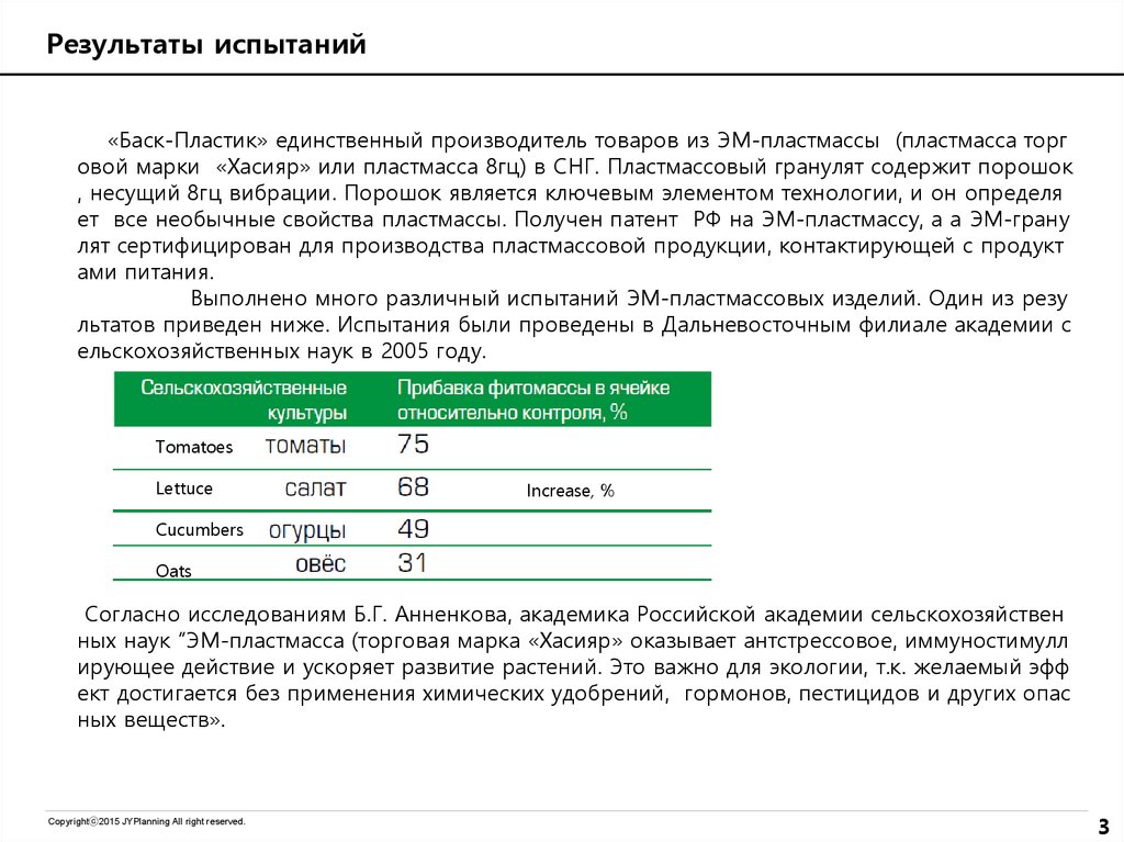 Результаты испытаний«Баск-Пластик» единственный производитель товаров из ЭМ-пластмассы (пластмасса торг