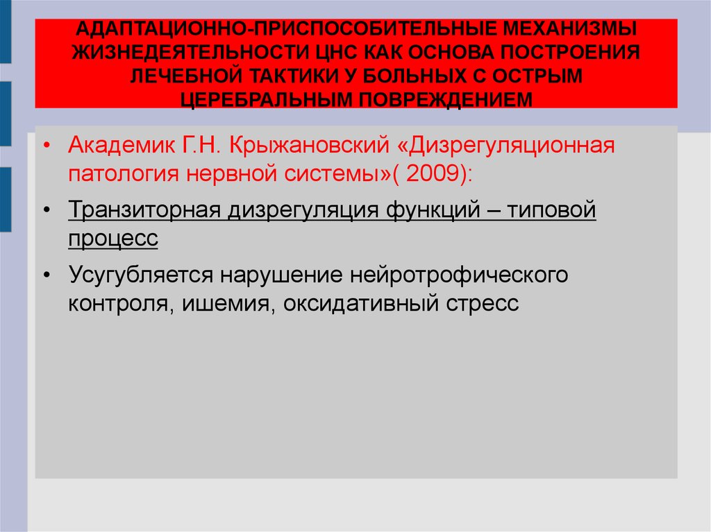 • Академик Г.Н. Крыжановский «Дизрегуляционная