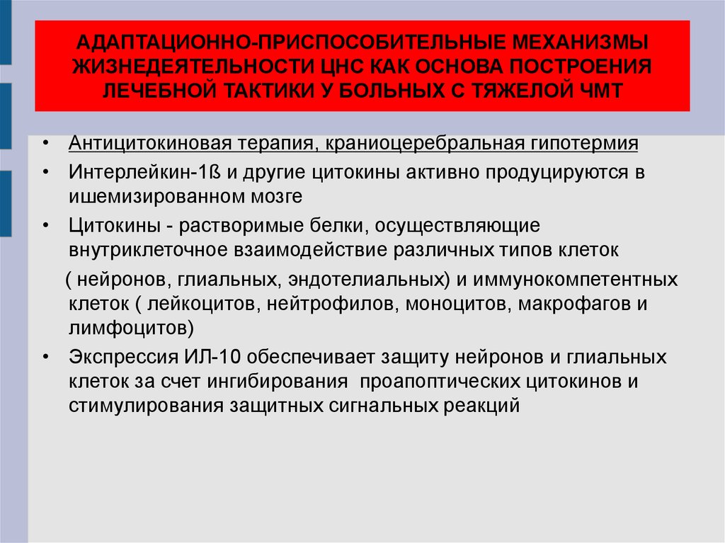 • Антицитокиновая терапия, краниоцеребральная гипотермия
