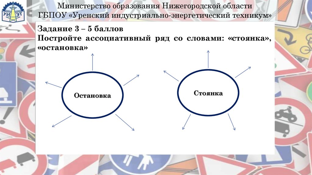 Постройте ассоциативный ряд со словами: «стоянка»,
