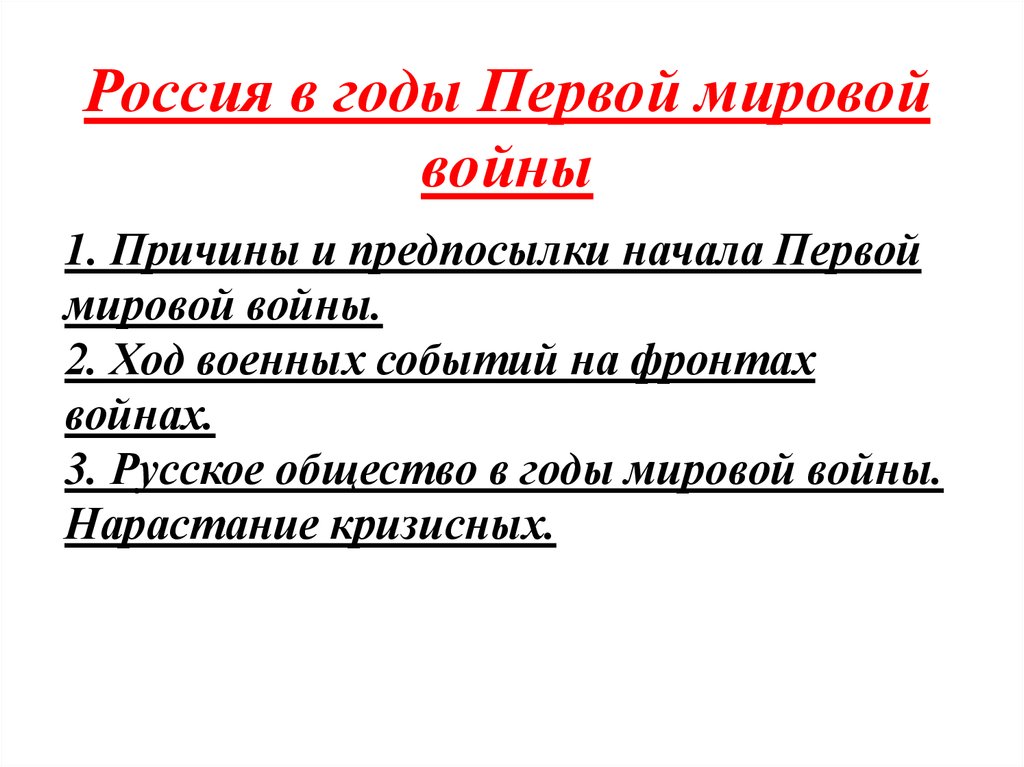 10. Русское общество в годы мировой войны. Нарастание кризисных.