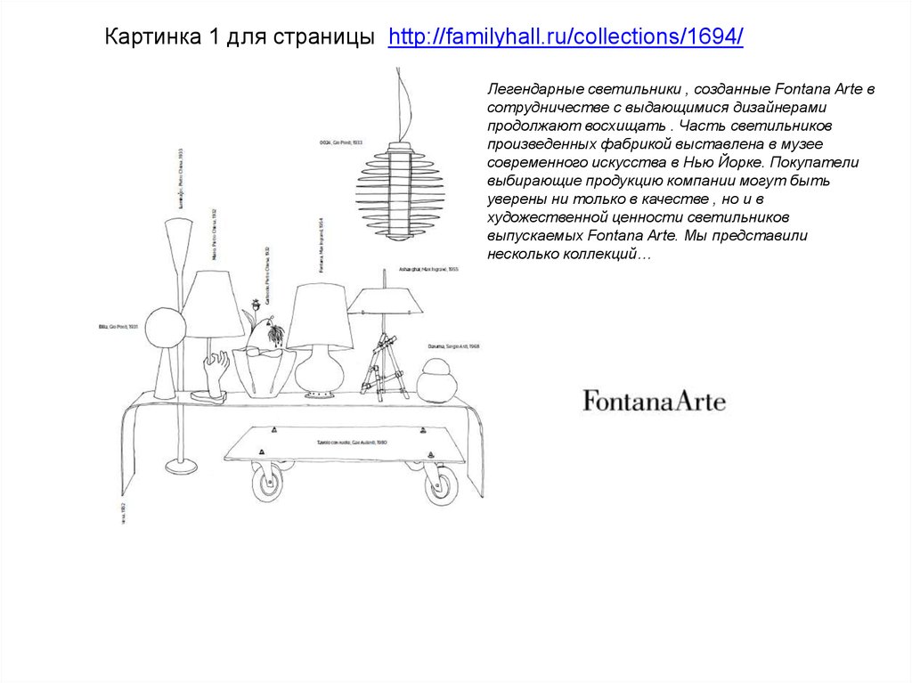 выпускаемых Fontana Arte. Мы представили