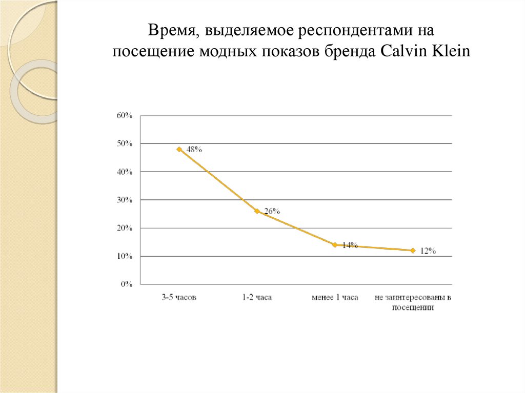 Время, выделяемое респондентами напосещение модных показов бренда Calvin Klein