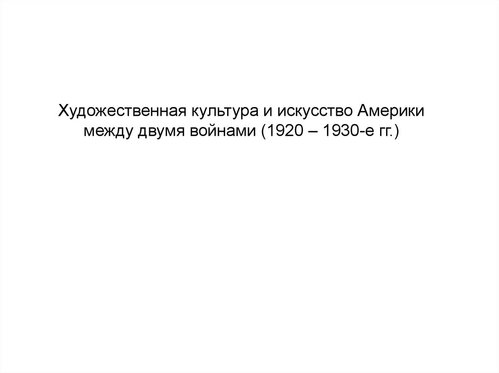 1. Художественная культура и искусство Америки между двумя войнами (1920 – 1930-е гг.)