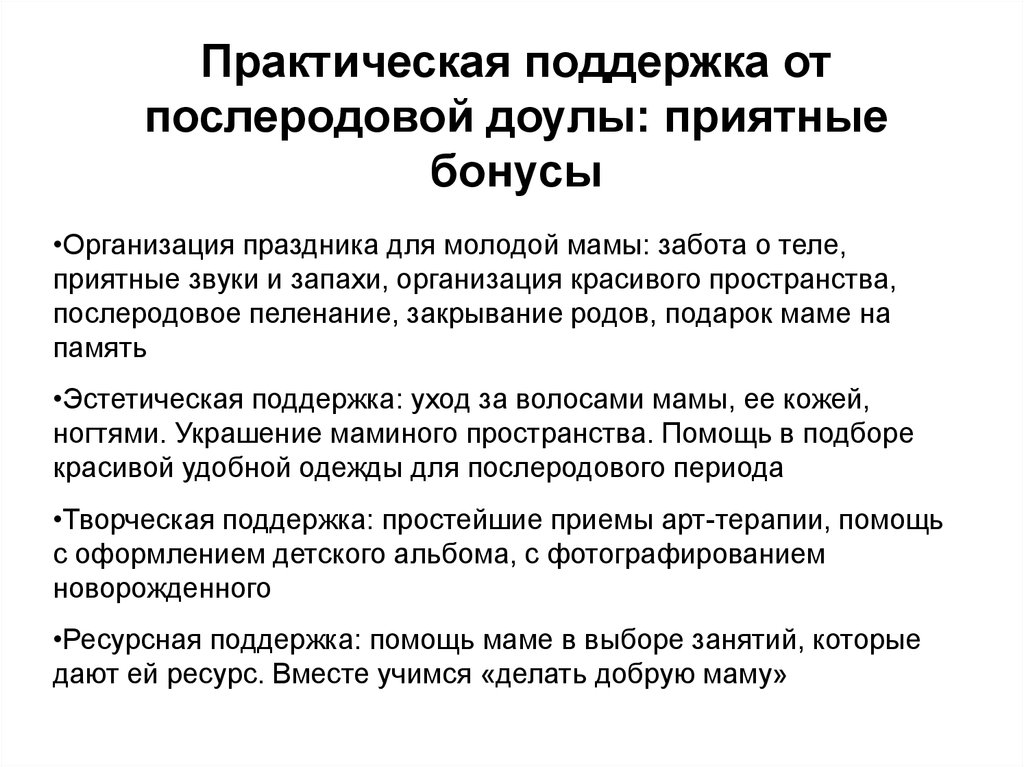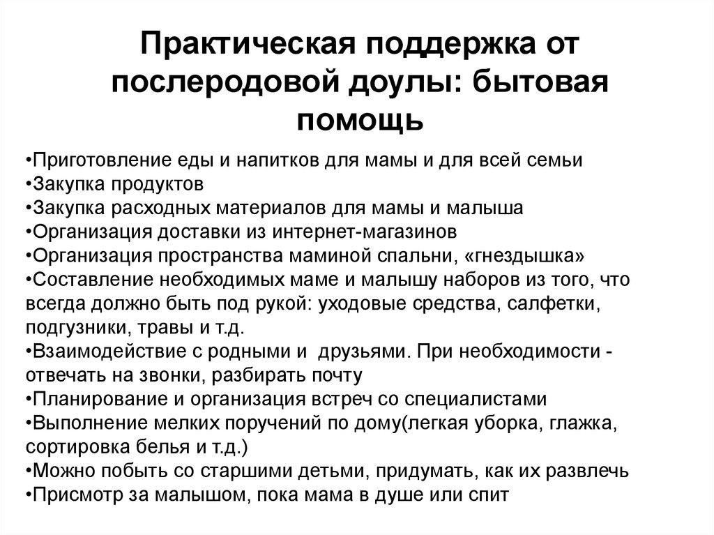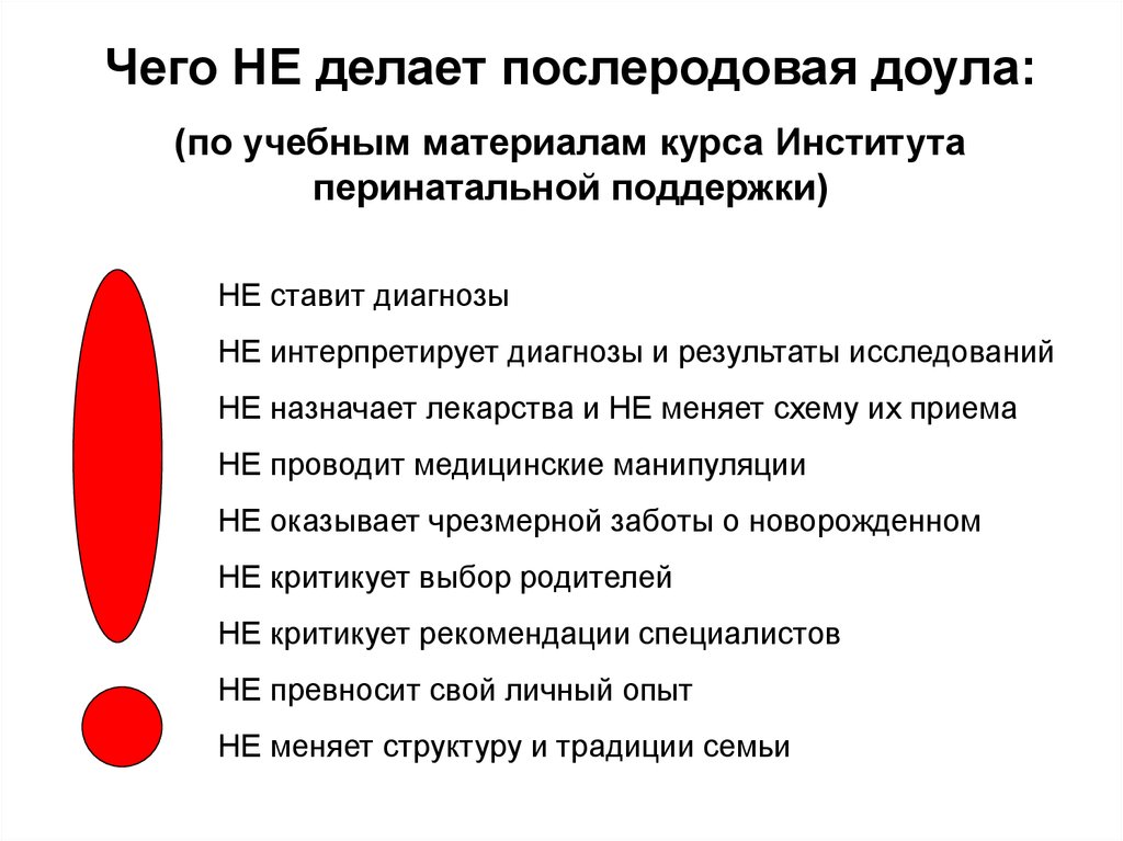 Чего НЕ делает послеродовая доула:(по учебным материалам курса Института