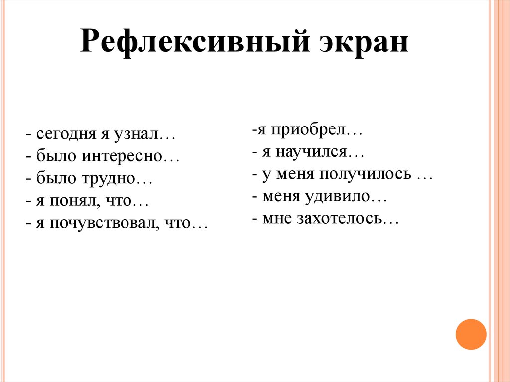 Рефлексивный экран- сегодня я узнал…