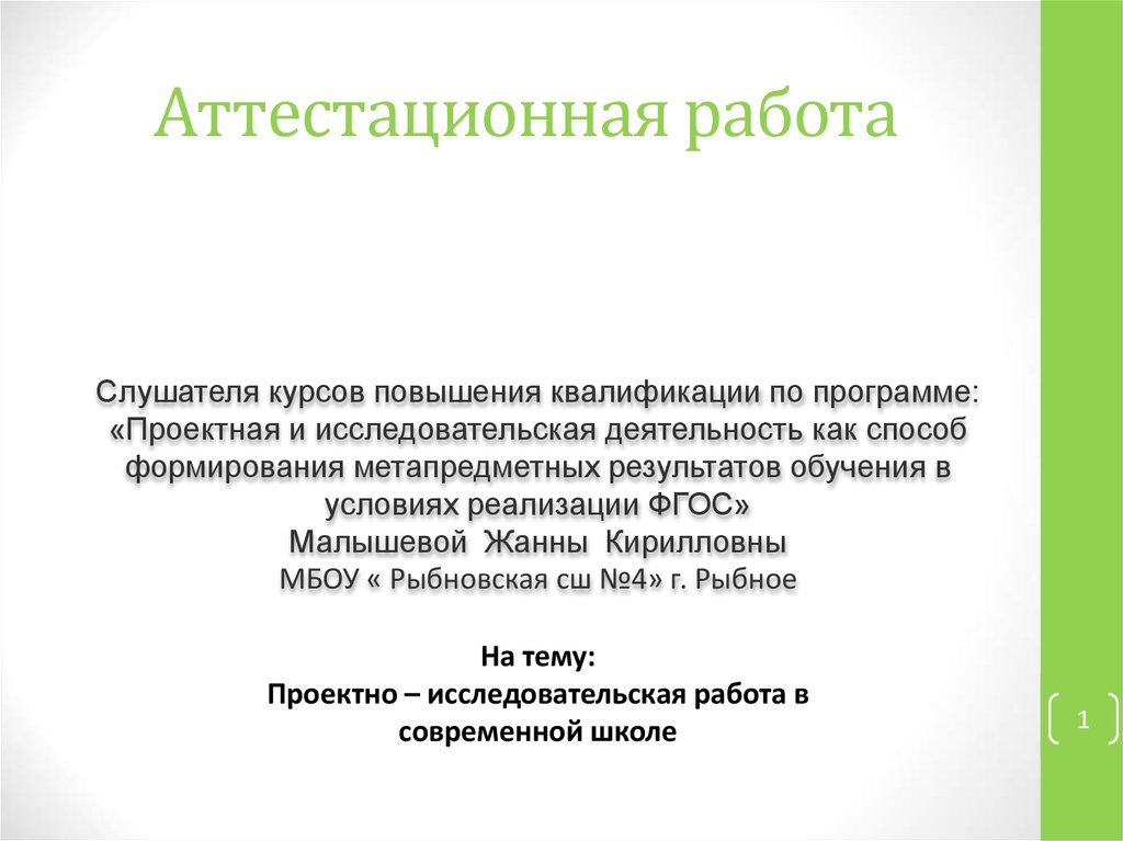 Аттестационная работа. Проектно – исследовательская работа в современной школе