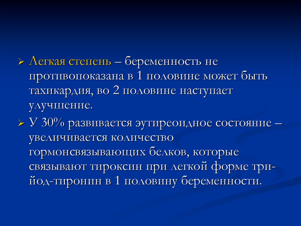 связывают тироксин при легкой форме трийод-тиронин в 1 половину беременности.