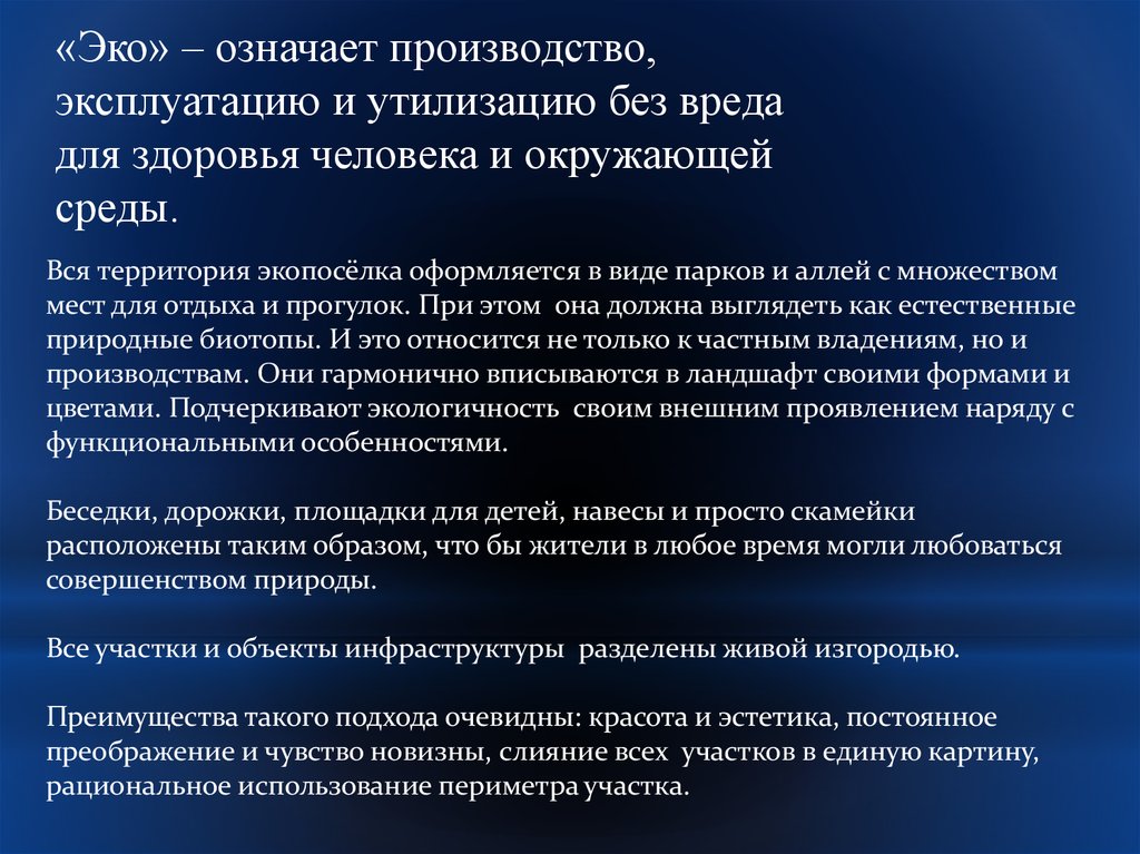 «Эко» – означает производство,эксплуатацию и утилизацию без вреда