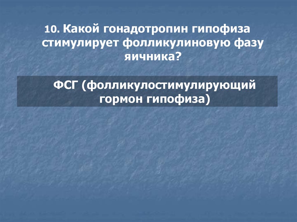 10. Какой гонадотропин гипофизастимулирует фолликулиновую фазу